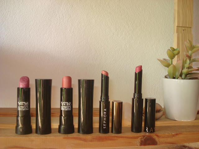 Pois bem, os dois primeiros são aqueles que eu mais uso para sair à noite. Duram que se fartam nos lábios e têm shimmer. À noite é permitido brilhar, certo? Gosto muito. De dia costumo optar pelos mais opacos, mais secos.